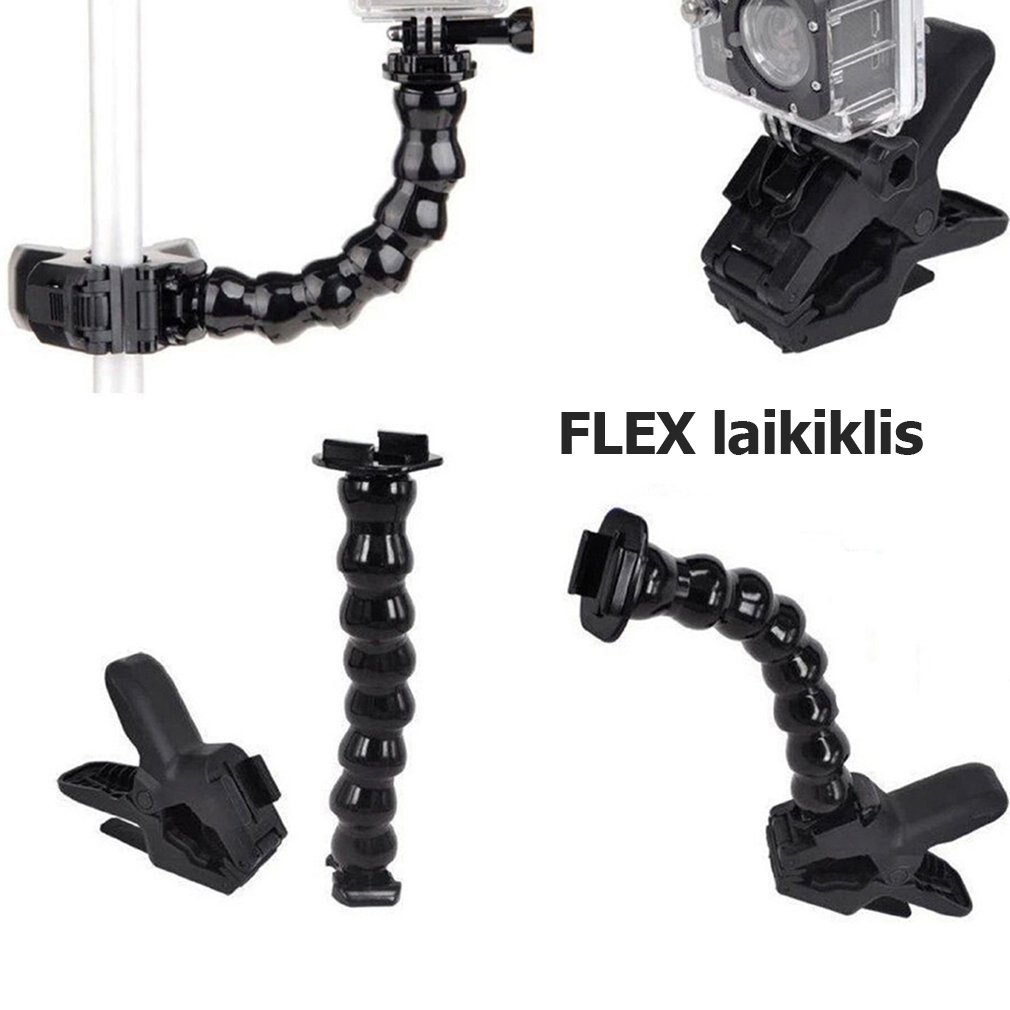 Naujas Flex tipo laikiklis, tinkantis įvairioms veiksmo kameroms. Galima naudoti ir be Gorrila tipo alkūnės dalies.
