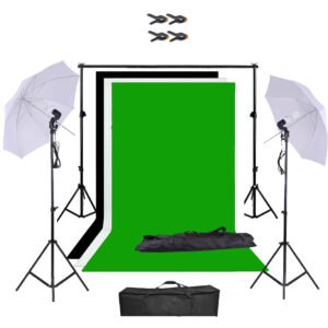 Komplekte yra net 3 spalvų fonai – juodas, baltas ir žalias. Jie pagaminti iš kokybiško audinio.