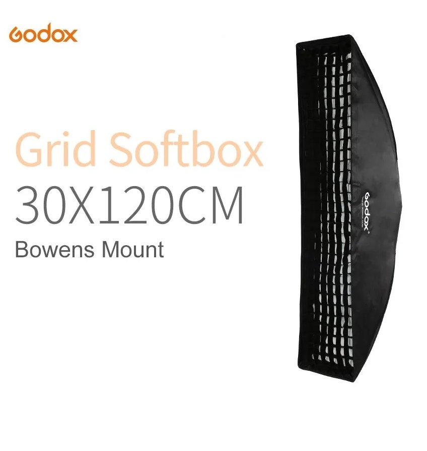 Profesionali Godox gamintojo 30x120cm softbox šviesdėžė su universalia bowens tipo jungtimi ir grid sklaidytuvu. Pagamintas iš kokybiškos medžiagos ir lengvo, patvaraus aliuminio rėmo. Softbox’ą lengva greitai išskleisti arba sulankstyti, jis patogus transportuoti ir lengvai montuojamas.