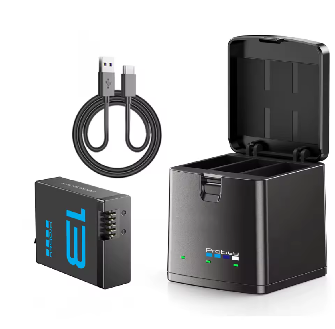 Aukštos kokybės Probty gamintojo akumuliatoriaus AEBAT-001 (AEBAT001) ir baterijų kroviklio komplektas, tinkantis Gopro 13 veiksmo kamerai.