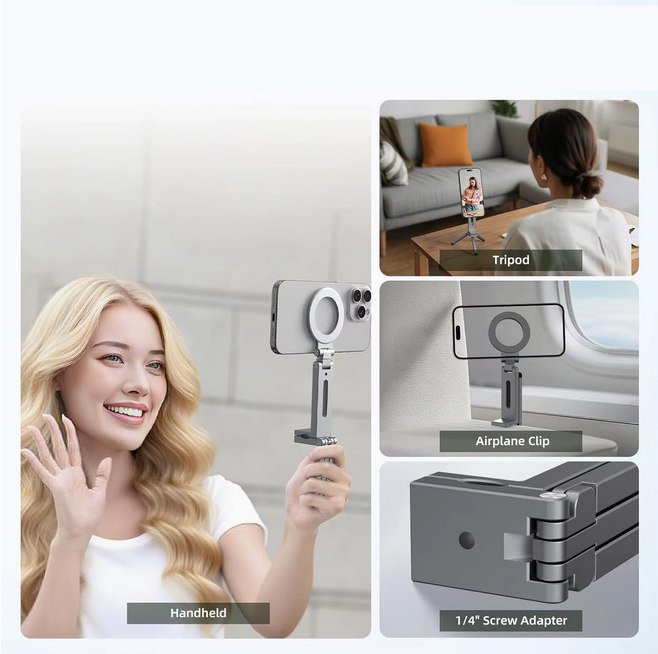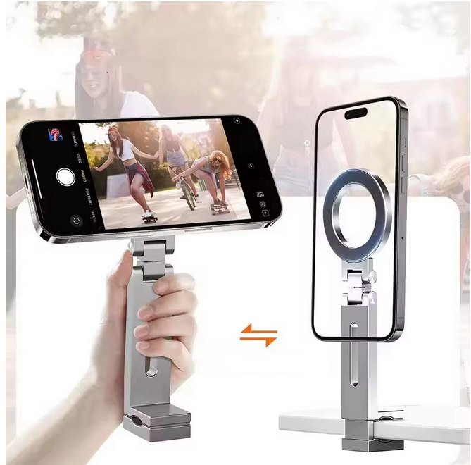 Šis kompaktiškas magnetinis telefono laikiklis–trikojis sukurtas patogiam naudojimui kelionėse ir kasdienėje veikloje. Sulankstytas jis yra mažesnis už telefoną, todėl lengvai telpa į krepšį ar kuprinę ir visada gali būti po ranka. Inovatyvus magnetinis spaustukas užtikrina tvirtą sukibimą su paviršiais iki 38 mm storio, todėl telefoną galima saugiai pritvirtinti prie stalų, lentynų ar kitų stabilių vietų.