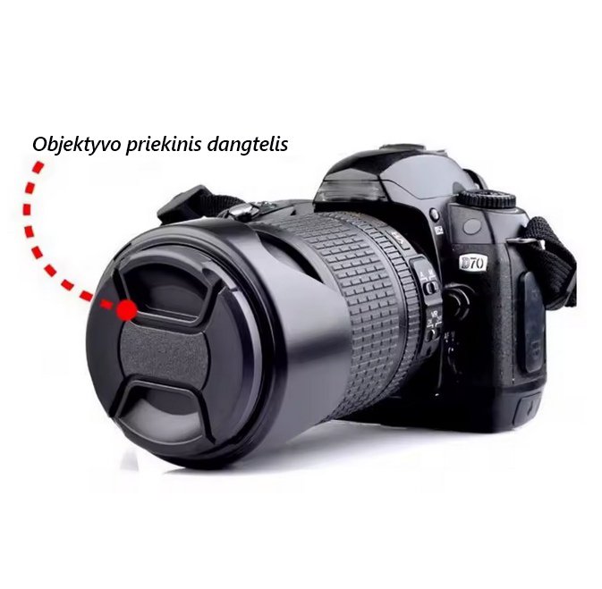 Pastaba: Jei objektyvo modelis yra pvz. 18-55 mm, tai tokio objektyvo priekinis dangtelis nebūtinai 55 mm.