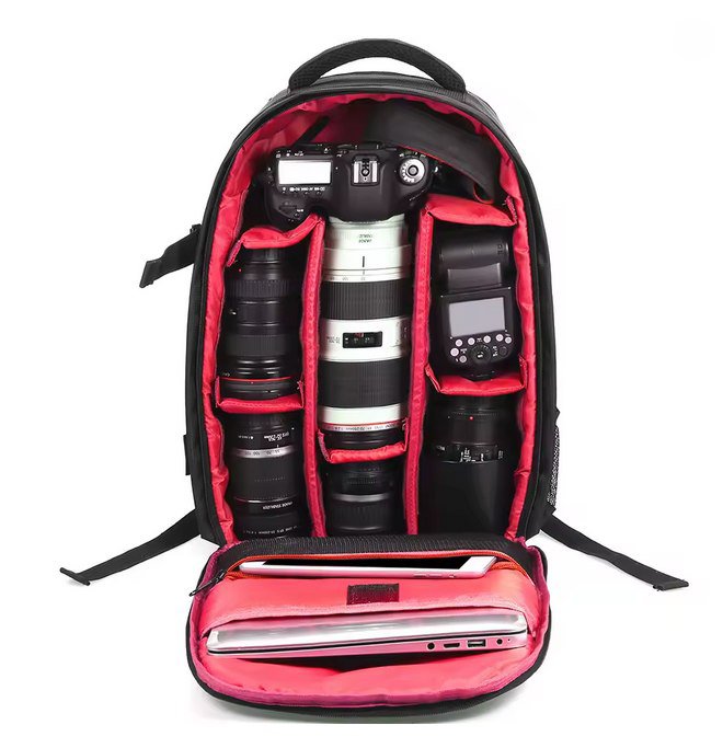 Nauja kuprinė fototechnikai, taip pat yra skyrius ir nešiojamam kompiuteriui. Kuprinė pasiūta iš specialaus atsparaus vandeniui nailono audinio, kuris apsaugos jūsų techniką nuo vandens poveikio, esant bet kokioms oro sąlygoms.