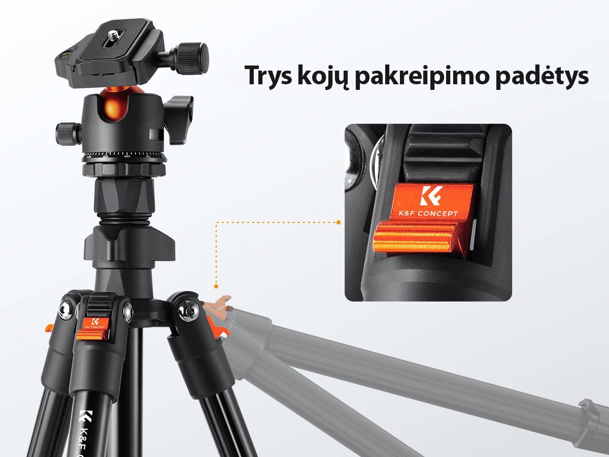 Profesionalus ir tvirtas trikojis stovas „K&F Concept“ A234A1+BH-36 fotoaparatui ar telefonui su itin tvirta ballhead reguliuojama galva ir patogia alkūne. Tai – aukštos kokybės, funkcionalus trikojis foto stovas, profesionaliai, tiek mėgėjiškai fotografijai ar filmavimams.