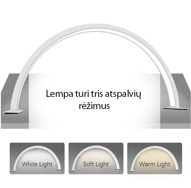 Ši pusmėnulio formos stalinė 56 cm lempa suteikia švelnų ir tolygų apšvietimą – puikiai tinka skaitymui, tiesioginėms transliacijoms, vaizdo įrašymui, vlog’ams ar naudojimui grožio salonuose atliekant įvairias procedūras.