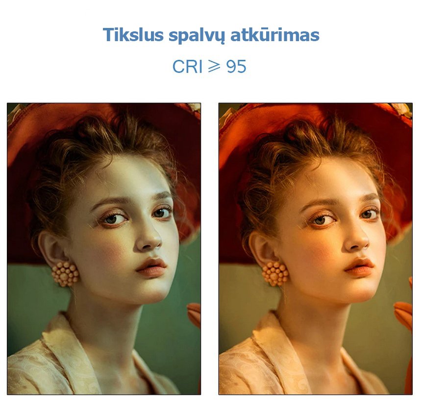 Tikroviškas spalvų atkūrimas (CRI 95+):