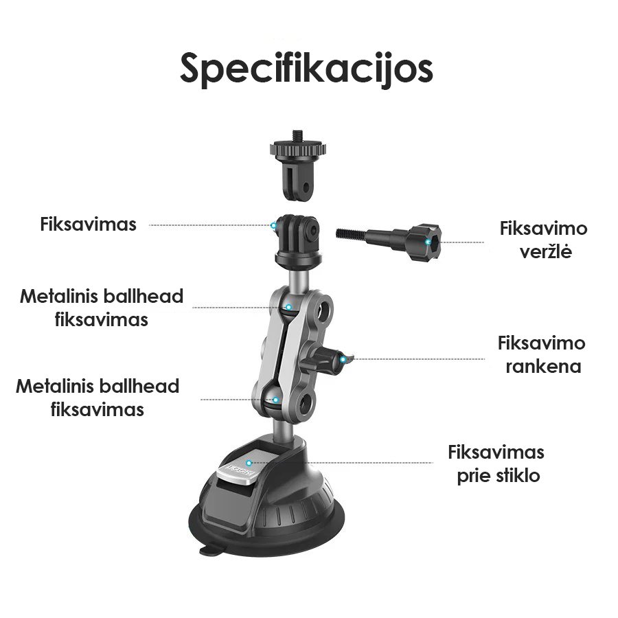 Naujas tvirtas suction cup siurbtukas prie stiklo. Tinka įvairioms veiksmo kameroms: Gopro, DJI, Insta 360 ir kitoms. Panaudoju specialų telefono laikiklį, kurį galite įsigyti mūsų el. parduotuvėje, galima tvirtinti ir mobilųjį telefoną.