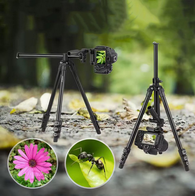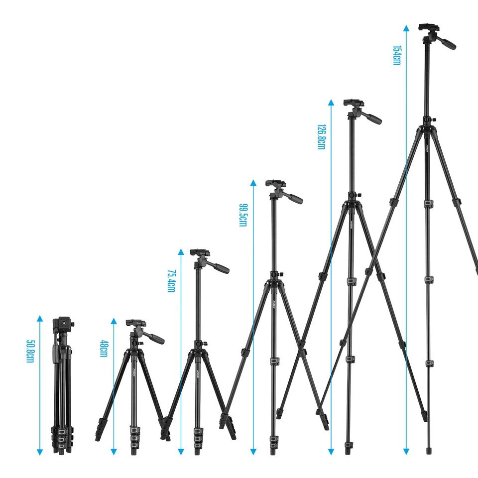 Lengvas ir kompaktiškas – trikojis sveria tik 0,97 kg, o aukštis reguliuojamas nuo 43 cm iki 154 cm. Bet kuriame aukštyje centrinė kolona gali būti stabiliai fiksuojama horizontaliai.