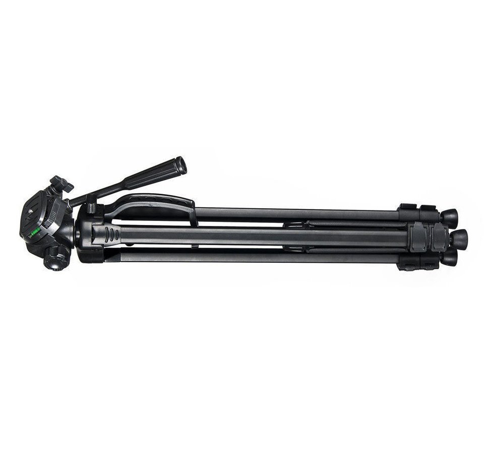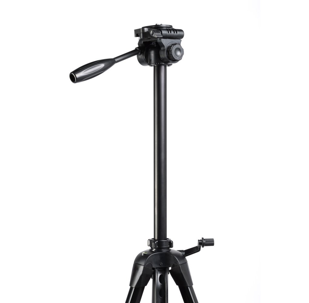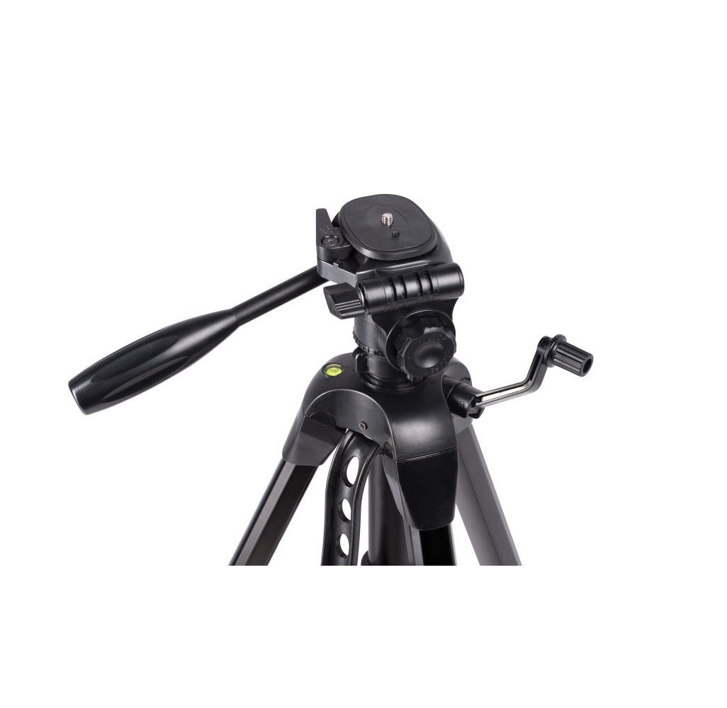 Šis trikojis stovas leidžia pritvirtinti tiek fotoaparatus, tiek mobiliuosius telefonus (pridėtas universalus laikiklis) ar kameras, lazerius. Jis taip pat turi 360° besisukančią galvutę ir reguliuojamo aukščio kojas (58-143 cm), tad su juo bus galima fotografuoti įvairiausiais kampais.