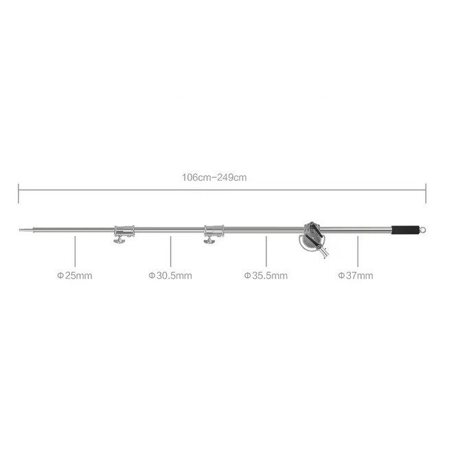 Tvirtas stovas yra pagamintas iš tvirto nerūdijančio plieno, turi trijų dalių reguliuojamą stiebą, pasižymi stabilumu ir puikiai tinka dažnam naudojimui. Kiekvienos dalies aukštį galima nesudėtingai reguliuoti, su rankenėlėmis tvirtai užfiksuoti.